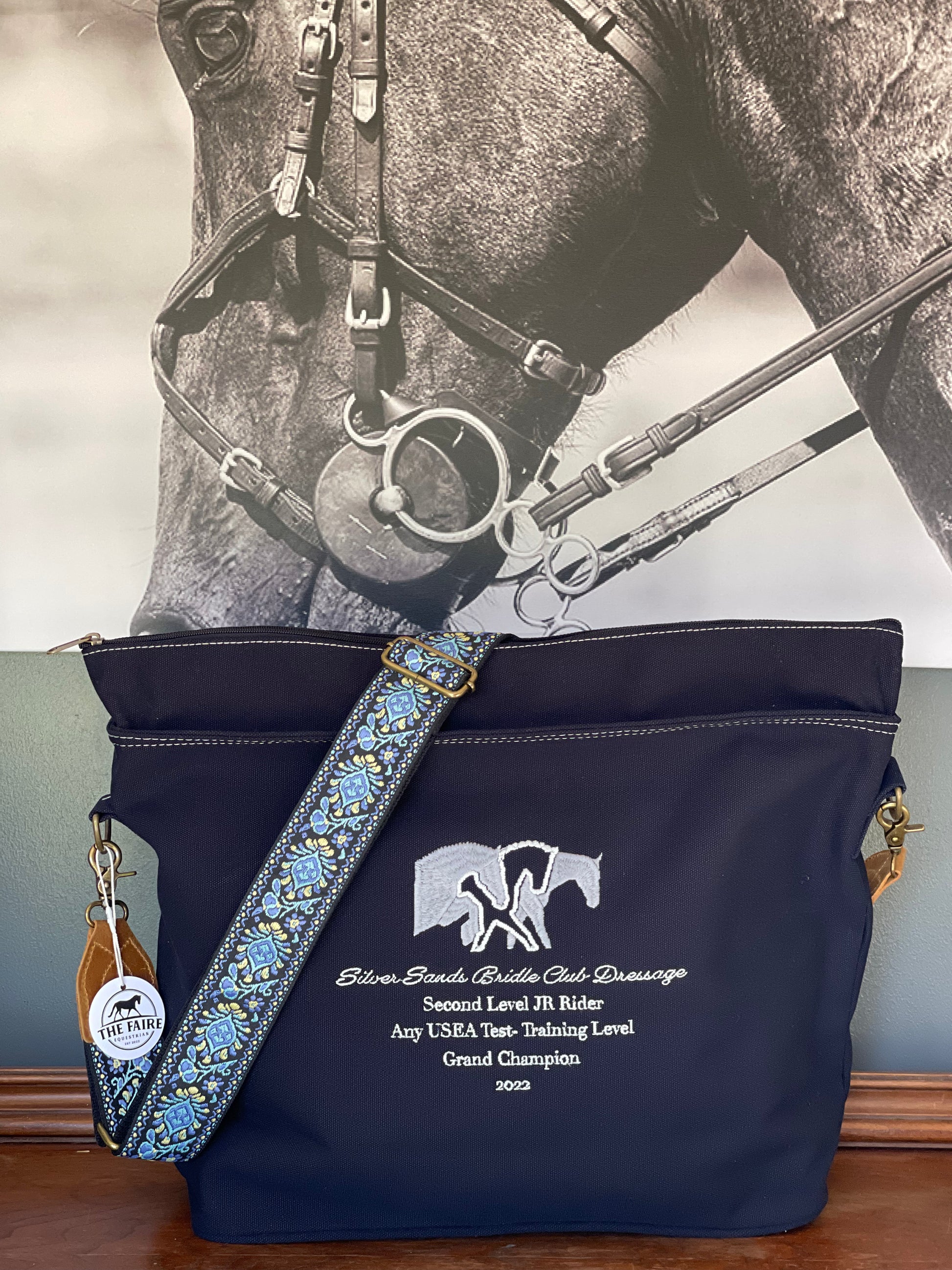 Gorgeous Navy Ringside tote- will be custom with your logo or horses name. Please email thefaireequestrian@gmail.com with your farm logo or information.