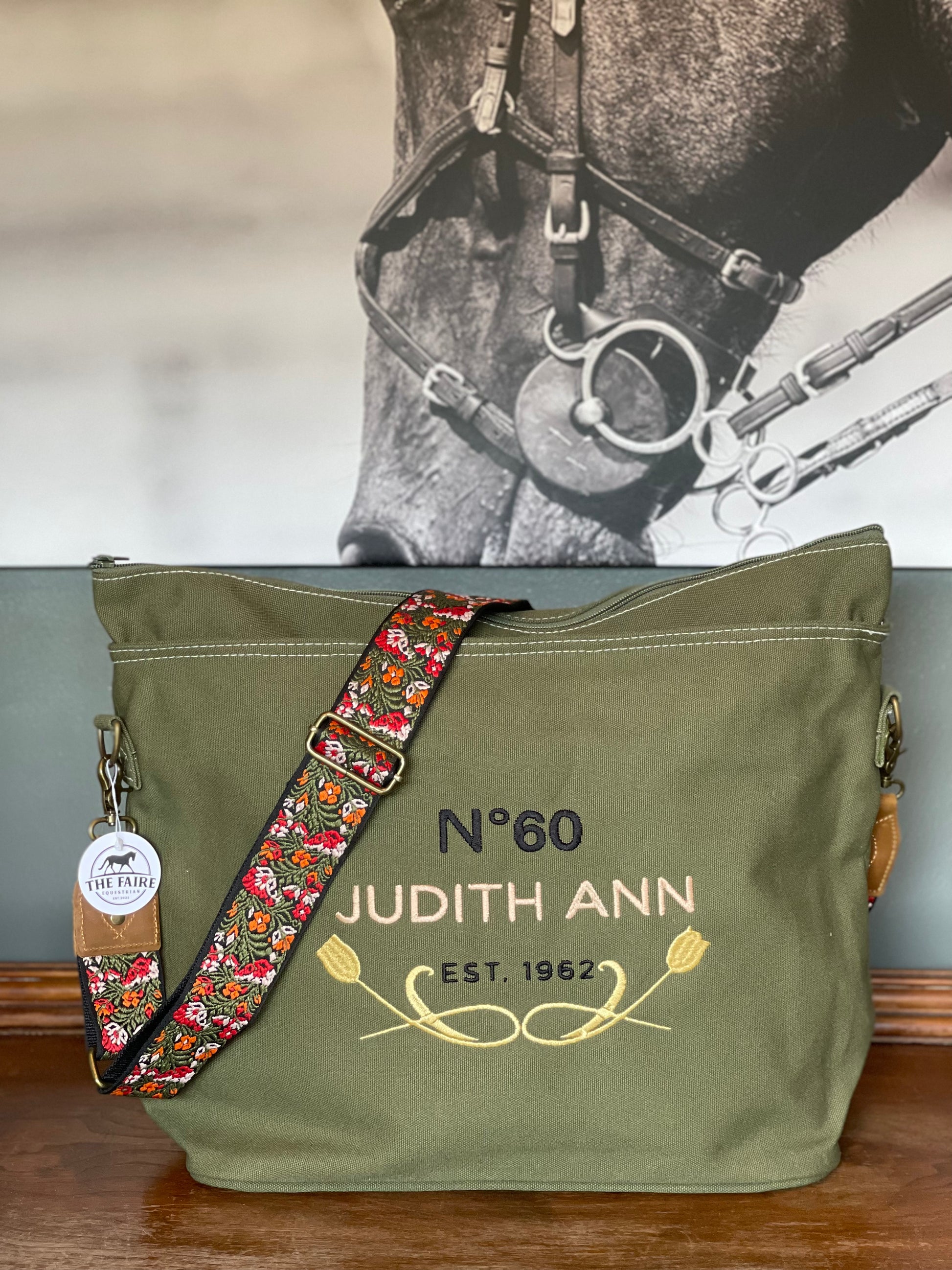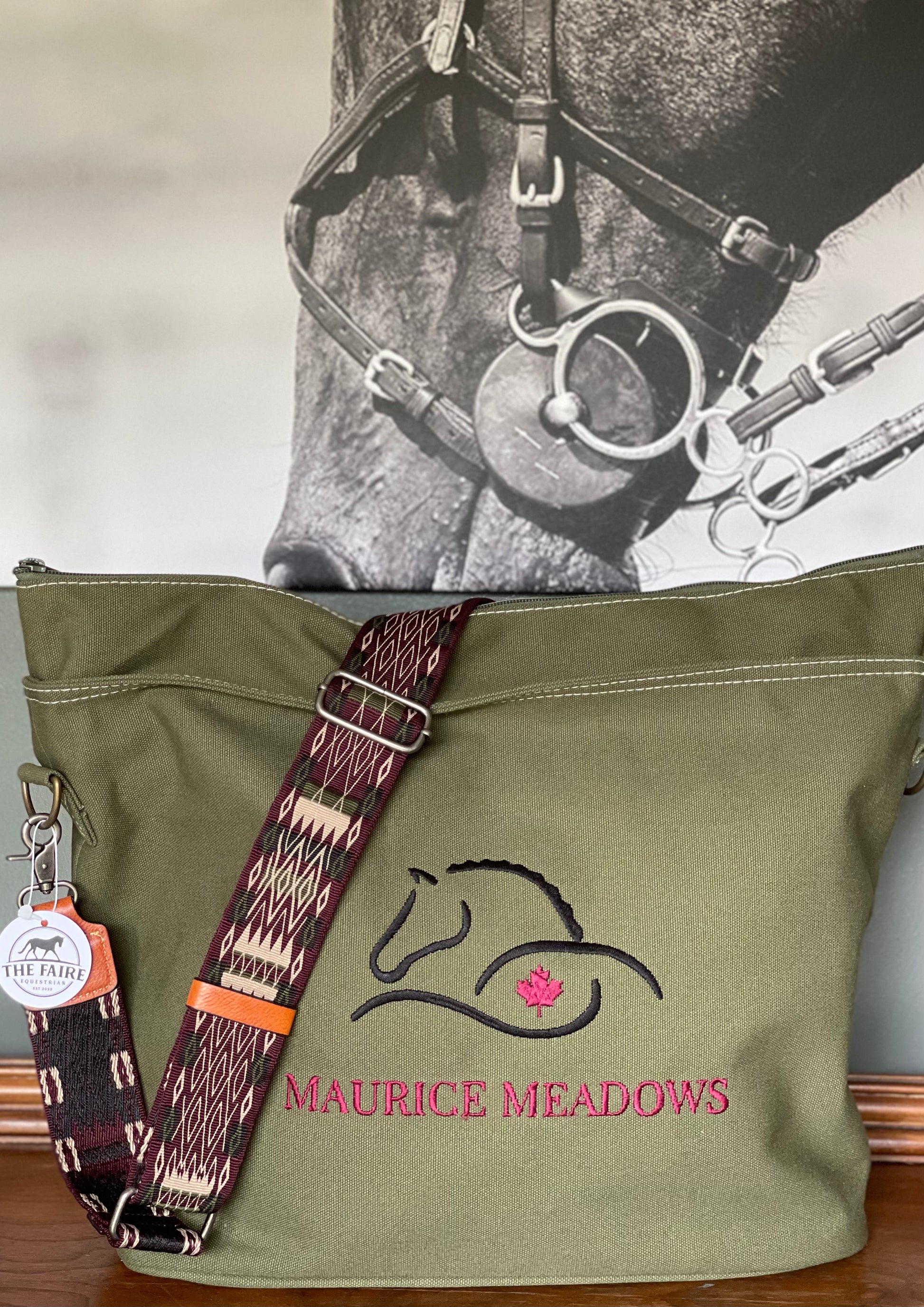 Gorgeous Olive Ringside tote- will be custom with your logo or horses name. Please email thefaireequestrian@gmail.com with your farm logo or information.